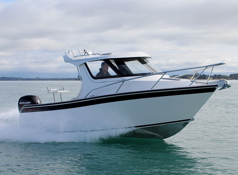 The Ultimate 21 Elite is a new concept in alloy craft to New Zealand and the first completely new design which utilises Ultimate Boats innovative new Hull in Hull Technology. It incorporates an all Alloy Space frame, all Alloy Hull and Cabin with the strength, quietness, warmth, and soft riding characteristics from its full GRP internal structure (hull in hull technology). The benefits of this GRP internal structure are that it firstly provides additional safety protection. The Hull in Hull Technology means that with any form of frontal impact or side on impact the boat would need to be penetrated through 2 strong and rigid skins before it compromises its ability to remain afloat, and keeping your friends and family safe.